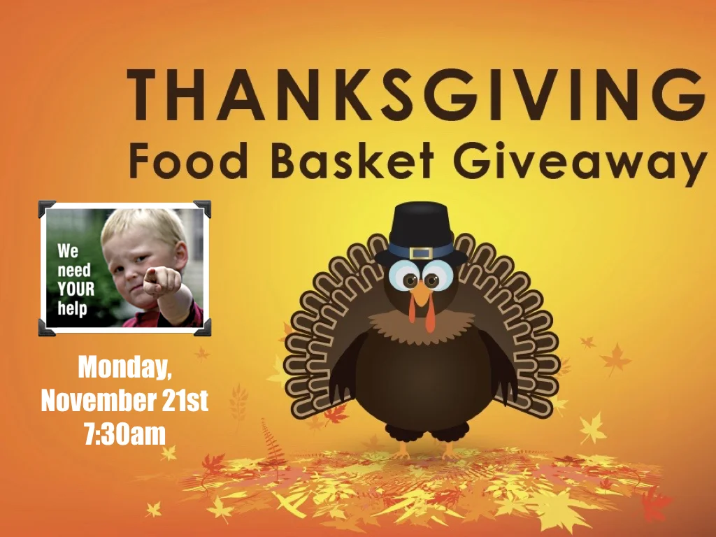 On Sunday, November 20th we will be collecting food items for our annual Thanksgiving Basket Outreach. Then on Monday, November 21st we will be gathering to put the baskets together and giving to registered families here in MV. It's going to be a great event.