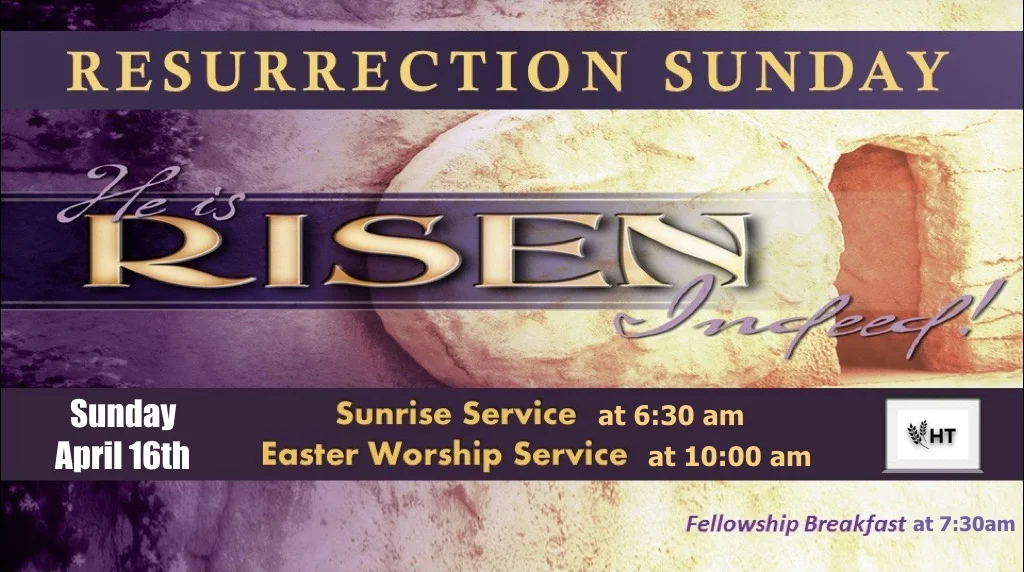 On Easter Sunday, we will be Celebrating the Risen Christ. Join us for a great day at Harvestime - the biggest day of the yeart. Service times are: Sunrise at 6:30am, SS Groups at 9:00am and Worship Service at 10:00am. This is going to be an AWESOME day!