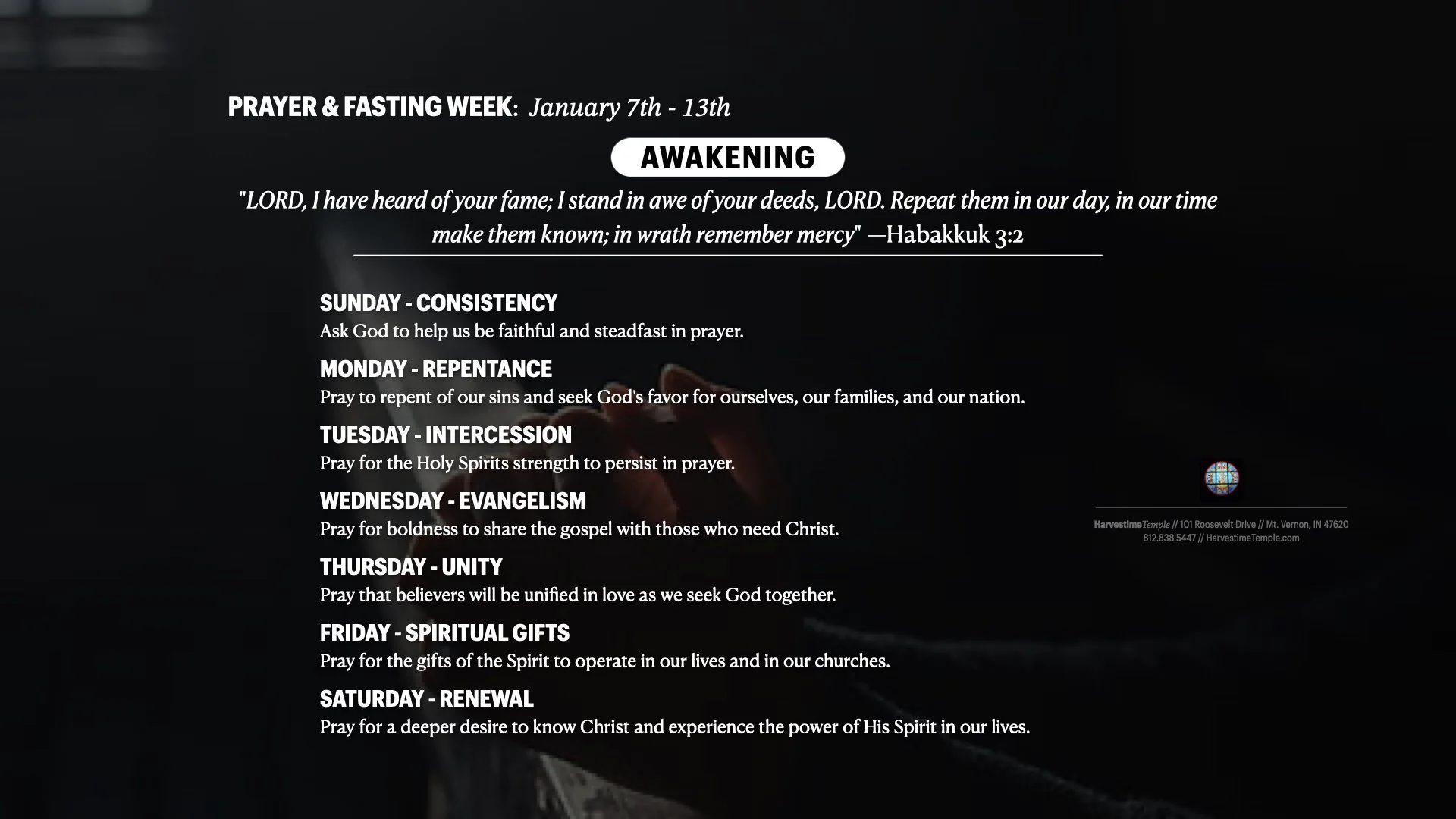 At the beginning of every year, we have a prayer focus. This lays a foundation for the New Year. Again this year, we’re joining together with A/G believers, churches and ministers in praying for an AWAKENING in America and in our churches. It all starts with an awakening in you and me. So save these dates and prayer points and let’s watch REVIVAL come!!