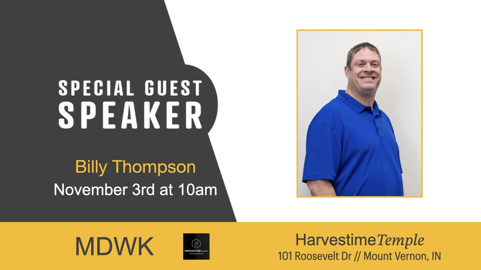 ✚ gCal ✚ iCal Billy Thompson will be speaking at Harvestime on Sunday, November 3rd. Service time is 10am and we invite you to join us.