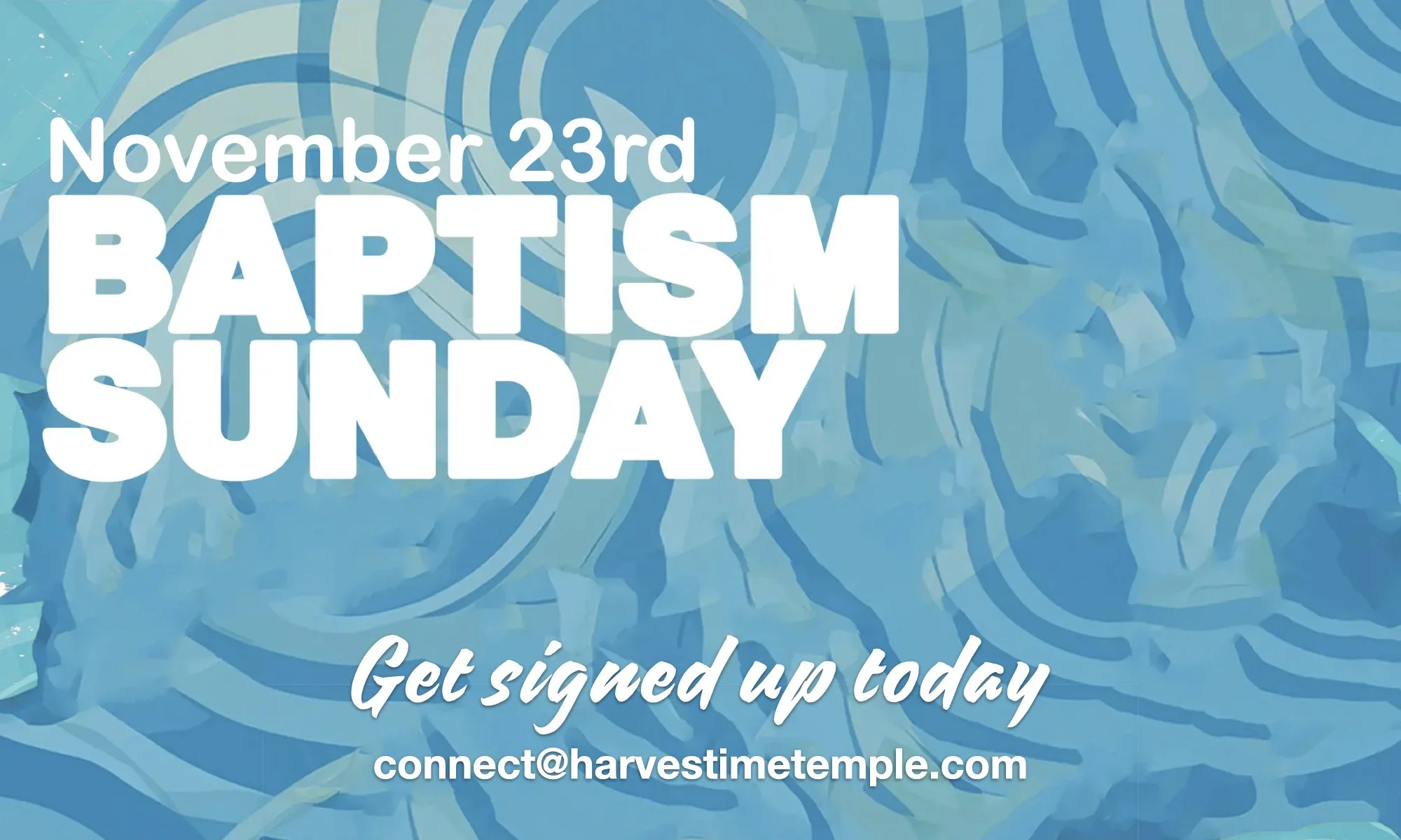 Get signed up by emailing us at: connect@harvestimetemple.com